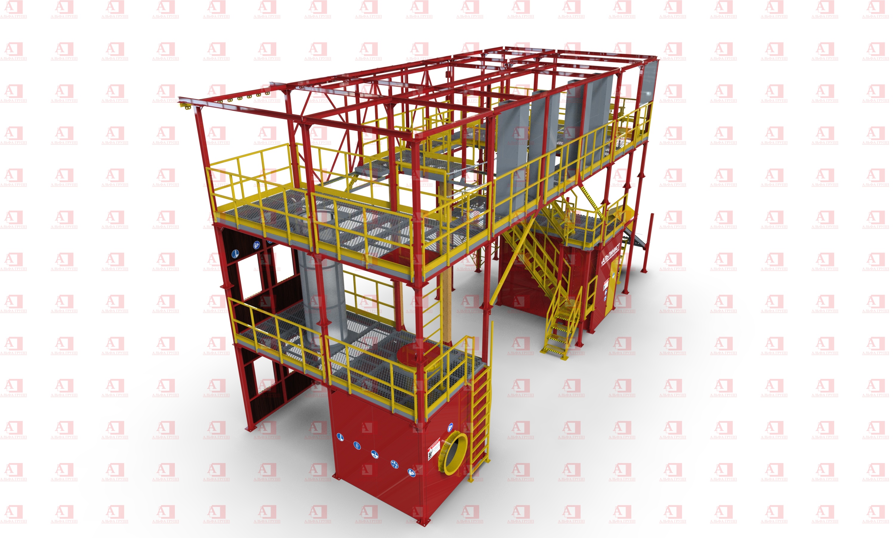 Конструкция полигона – стальная, состоящая из сварных модулей, каждый элемент проходит сложную пескоструйную обработку, а затем покрывается полимерным покрытием. Все модули собираются и крепятся на болтовые соединения.